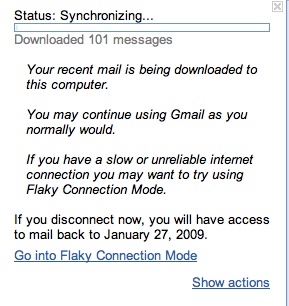 早速ネット接続を切って、それでもGmailが使えるかテストしてみました。